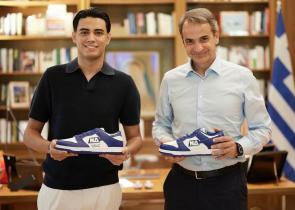 Ένα ζευγάρι παπούτσια «Νέα Δημοκρατία» απέκτησε ο Κυριάκος Μητσοτάκης. Ο Πρωθυπουργός έσπευσε να τα δοκιμάσει σε βίντεο που ανάρτησε στο TikTok. «E...