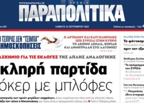 Αύριο, Σάββατο 24 Σεπτεμβρίου, η εφημερίδα «Παραπολιτικά» κυκλοφορεί σε όλα τα περίπτερα της χώρας με πλούσια θεματολογία και πολλές αποκλειστικότητες...