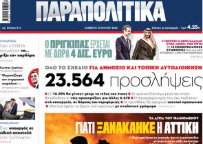 Αύριο, Σάββατο 22 Απριλίου, η εφημερίδα ΠΑΡΑΠΟΛΙΤΙΚΑ κυκλοφορεί σε όλα τα περίπτερα της χώρας με πλούσια θεματολογία, πολλές αποκλειστικότητες, αλλά κ...