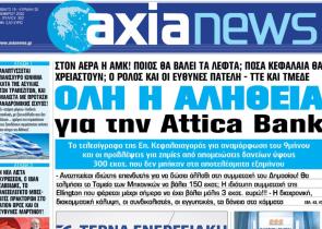 Με τίτλο: «Όλη η αλήθεια για την Attica Bank» κυκλοφορεί αύριο, Σάββατο 19 Νοεμβρίου, η «Axianews». Στον αέρα η ΑΜΚ! Ποιος θα βάλει τα λεφτά; Πόσα ...