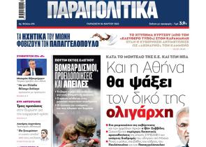 Εκτάκτως αύριο, Παρασκευή 4 Μαρτίου, η εφημερίδα ΠΑΡΑΠΟΛΙΤΙΚΑ κυκλοφορεί σε όλα τα περίπτερα της χώρας με πλούσια θεματολογία και πολλές αποκλειστικότ...