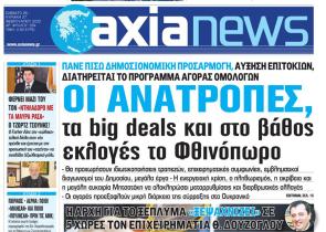 Με τίτλο: «Οι ανατροπές, τα big deals και στο βάθος εκλογές το φθινόπωρο» κυκλοφορεί αύριο, Σάββατο 26 Φεβρουαρίου, η «Axianews». Πάνε πίσω δημοσιο...