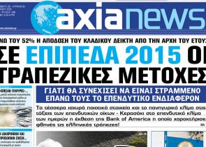 Με τίτλο: «Σε επίπεδα 2015 οι τραπεζικές μετοχές» κυκλοφορεί η «Axianews» το Σάββατο 28 Ιουνίου. Άνω του 52% η απόδοση του κλαδικού δείκτη από την ...