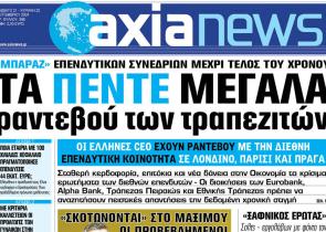 Με τίτλο: «Τα πέντε μεγάλα ραντεβού των τραπεζιτών» κυκλοφορεί αύριο, Σάββατο 21 Σεπτεμβρίου, η «Axianews». «Μπαράζ» επενδυτικών συνεδρίων μέχρι το...