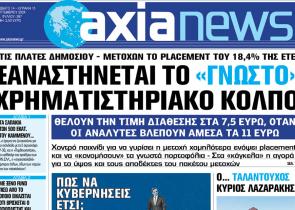 Με τίτλο: «Ξαναστήνεται το "γνωστό" χρηματιστηριακό κόλπο» κυκλοφορεί αύριο, Σάββατο 14 Σεπτεμβρίου, η «Axianews». Στις πλάτες Δημοσίου - μετόχων τ...