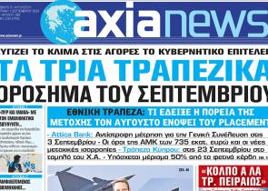 Με τίτλο: «Τα τρία τραπεζικά ορόσημα του Σεπτεμβρίου» κυκλοφορεί αύριο, Σάββατο 31 Αυγούστου, η «Axianews». Ζυγίζει το κλίμα στις αγορές το κυβερνη...