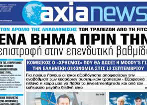 Με τίτλο: «Ένα βήμα πριν την επιστροφή στην επενδυτική βαθμίδα» κυκλοφορεί αύριο, Σάββατο 7 Σεπτεμβρίου, η «Axianews». Στον δρόμο της αναβάθμισης τ...