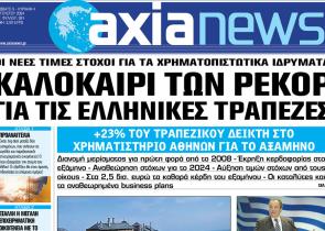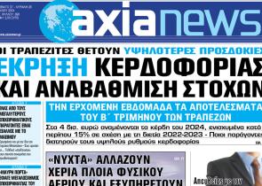 Με τίτλο: «Έκρηξη κερδοφορίας και αναβάθμιση στόχων» κυκλοφορεί αύριο, Σάββατο 27 Ιουλίου, η «Axianews». Οι τραπεζίτες θέτουν υψηλότερες προσδοκίες...