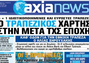 Με τίτλο: «Ο τραπεζικός χάρτης στην μετά ΤΧΣ εποχή» κυκλοφορεί αύριο, Σάββατο 22 Ιουνίου, η «Axianews». 4 + 1 ιδιωτικοποιημένες και εύρωστες τράπεζ...