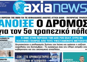 Με τίτλο: «Άνοιξε ο δρόμος για τον 5ο τραπεζικό όμιλο» κυκλοφορεί αύριο, Σάββατο 1 Ιουνίου, η «Axianews». Το πόρισμα της DBRS για τις κεφαλαιακές α...