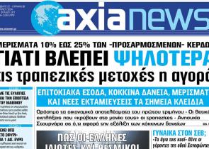 Με τίτλο: «Γιατί βλέπει ψηλότερα τις τραπεζικές μετοχές η αγορά» κυκλοφορεί αύριο, Σάββατο 27 Απριλίου, η «Axianews». Μερίσματα 10% έως 25% των -πρ...