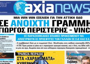 Με τίτλο: «Σε ανοιχτή γραμμή Γιώργος Περιστέρης - Vinci» κυκλοφορεί αύριο, Σάββατο 13 Ιανουαρίου η «Axianews». Μια win win εξέλιξη για την Αττική Ο...