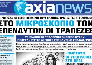 Με τίτλο: «Στο μικροσκόπιο των επενδυτών οι τράπεζες» κυκλοφορεί αύριο, Σάββατο 20 Σεπτεμβρίου, η «Axianews». Τι ρώτησαν οι ξένοι θεσμικοί τους Έλλ...