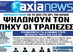 Με τίτλο: «Ψηλώνουν τον πήχυ οι τράπεζες» κυκλοφορεί αύριο, Σάββατο 13 Σεπτεμβρίου, η «Axianews». Μερίσματα ρεκόρ για το 2025 στο 60% των κερδών ...