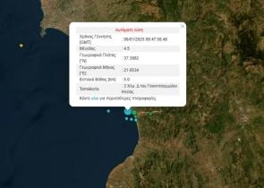 Σεισμική δόνηση 4,5 Ρίχτερ σημειώθηκε στην Ηλεία, το πρωί της Δευτέρας. Σύμφωνα με το Γεωδυναμικό Ινστιτούτο, ο σεισμός που έγινε στις 11:47, σημει...