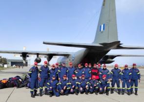 Λίγο πριν πετάξει με ένα μεταγωγικό αεροσκάφος C130 προς την νοτιοανατολική Τουρκία που έχει χτυπηθεί από δύο ισχυρούς σεισμούς εντάσεως 7,8 και 7,7 ρ...