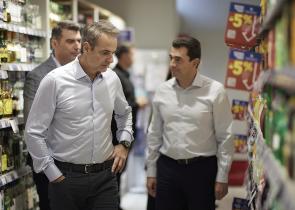 Εφοδο σε σούπερ μάρκετ έκανε σήμερα ο Κυριάκος Μητσοτάκης, μετά την έναρξη εφαρμογής των νέων μέτρων για την ακρίβεια που αναμένεται να φέρει πτώση στ...