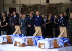 Σε κλίμα βαθιάς συγκίνησης η τελετή επαναπατρισμού των λειψάνων οκτώ Ελλήνων οπλιτών πεσόντων κατά την τουρκική εισβολή από την Κύπρο στην αεροπορική ...