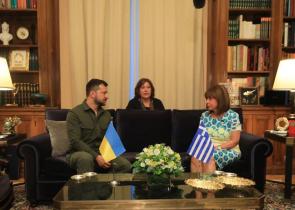 Την πρώτη του επίσκεψη στην χώρα μας πραγματοποιεί ο πρόεδρος της Ουκρανίας. Ο Βολοντίμιρ Ζελένσκι, συνάντησε στο Προεδρικό Μέγαρο την Κατερίνα Σακελλ...