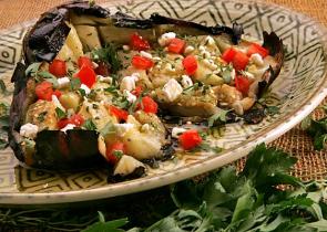 Για 4 άτομα Ετοιμασία: 10 λεπτά Μαγείρεμα: 45 λεπτά Υλικά - 5-6 μελιτζάνες φλάσκες - 3-4 κουταλάκια σούπας παρθένο ελαιόλαδο - 2 σκε...