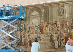 Μετά από δύο χρόνια ήρθε η ώρα ο τοιχοτάπητας, που απεικονίζει τη «Σχολή των Αθηνών», μια από τις διασημότερες νωπογραφίες του Αναγεννησιακού καλλιτέχ...