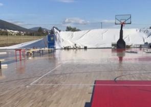 Θεσσαλονίκη: Ξηλώθηκε σκέπαστρο αθλητικού χώρου από τους ανέμους – Από θαύμα δεν υπήρξαν τραυματισμοί