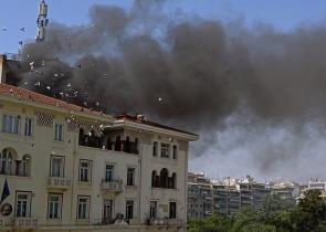 Φωτιά ξέσπασε στην πλατεία Αριστοτέλους στη Θεσσαλονίκη, στο κτίριο όπου στεγάζονται το Επαγγελματικό Επιμελητήριο Θεσσαλονίκης και το Βιοτεχνικό Επιμ...