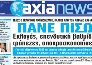 Με τίτλο: «Πάνε πίσω Εκλογές, επενδυτική βαθμίδα, τράπεζες, αποκρατικοποιήσεις», κυκλοφορεί εκτάκτως αύριο, Παρασκευή 23 Δεκεμβρίου, η «Axianews». ...