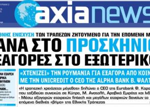 Με τίτλο: «Ξανά στο προσκήνιο εξαγορές στο Εξωτερικό» κυκλοφορεί αύριο, Σάββατο 20 Απριλίου, η «Axianews». Η διεθνής ενίσχυση των τραπεζών ζητούμεν...
