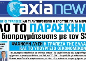 Με τίτλο: «Όλο το παρασκήνιο της διαπραγμάτευσης με τον SSM» κυκλοφορεί αύριο, Σάββατο 13 Απριλίου η «Axianews». Τι ζητάνε οι τράπεζες και τι αντιπ...