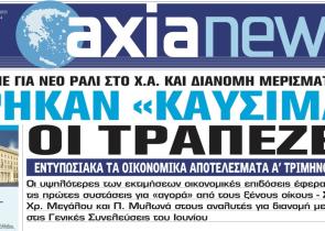 Με τίτλο: «Βρήκαν «καύσιμα» οι τράπεζες» κυκλοφορεί εκτάκτως αύριο, Παρασκευή 3 Μαΐου, η «Axianews». Πάμε για νέο ράλι στο Χρηματιστήριο Αθηνών και...