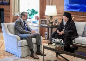 Tον Οικουμενικό Πατριάρχη Βαρθολομαίο υποδέχτηκε στο Μέγαρο Μαξίμου ο Πρωθυπουργός, Κυριάκος Μητσοτάκης. Κατά την έναρξη της συνάντησής τους, ο Πρω...