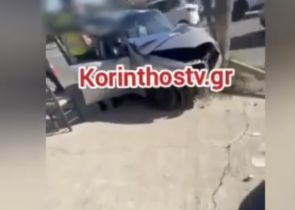Σοβαρό τροχαίο στο Βραχάτι Κορινθίας: Αυτοκίνητο «καρφώθηκε» σε κολώνα
