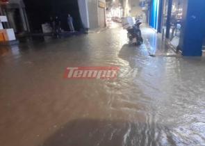 Η κυκλοφορία διεξάγεται με δυσκολία σε ορισμένους δρόμους της Πάτρας. Από τη σφοδρή καταιγίδα πλημμύρισαν σπίτια και επιχειρήσεις.