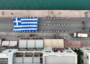 Υψώθηκε το μεσημέρι του Σαββατου, προπαραμονή της Εθνικής Επετείου της 25ης Μαρτίου, μια τεράστια ελληνική σημαία στο λιμάνι της Χίου. Η σημαία έφτ...