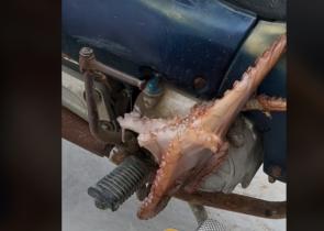 Στη στεριά βγήκαν τα χταπόδια στα Κουφονήσια. Ένας κάτοικος πήγε στη μηχανή του όταν είδε ένα χταπόδι να έχει βγει στο νερό και να έχει κολλήσει στο δ...