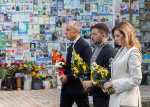 Στεφάνι για την επέτειο για την Ημέρα Ανεξαρτησίας της Ουκρανίας κατέθεσαν ο Boλοντίμιρ Ζελένσκι μαζί με την σύζυγό του και τον Πρωθυπουργό του Καναδά...