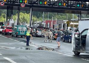 Μια ζέβρα έκανε την εμφάνιση της στα διόδια αυτοκινητόδρομου που συνδέει τη Γαλλία με την Ισπανία στην περιοχή των Βάσκων. Η ζέβρα το έσκασε από το αυ...