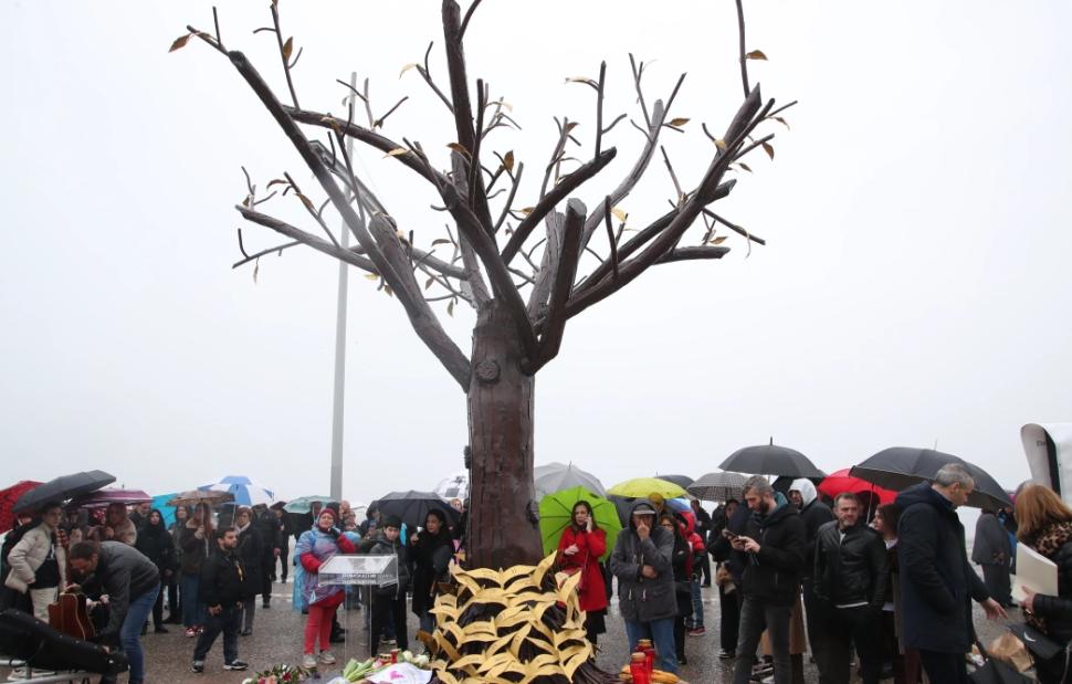 Τα αποκαλυπτήρια του «Δέντρου της Μνήμης» στη Θεσσαλονίκη, ενός έργου που τιμά τα 57 θύματα που χάθηκαν στο πολύνεκρο σιδηροδρομικό δυστύχημα των Τεμπών πριν από δύο χρόνια, πραγματοποιήθηκαν σήμερα στις 12:00 το μεσημέρι. Πρόκειται για ένα «δίδυμο έργο» που φιλοτέχνησε η εικαστικός Μαρία Μανδάκη και, όπως το μοιραίο τρένο, έτσι κι αυτό, ξεκίνησε το «ταξίδι» του από την Αθήνα, όπου εγκαινιάστηκε το Σάββατο (1/3), και έχει προορισμό τη Θεσσαλονίκη.