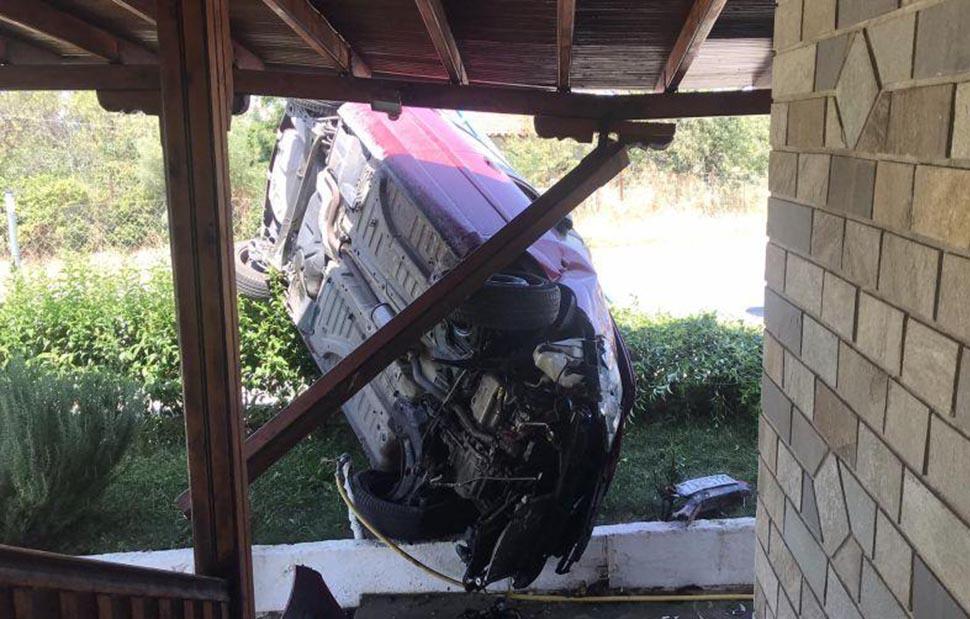 Από τύχη γλίτωσαν οι ένοικοι ενός σπιτιού στο Φίλυρο Θεσσαλονίκης όταν ξαφνικά ένα αυτοκίνητο "προσγειώθηκε" στην αυλή τους.