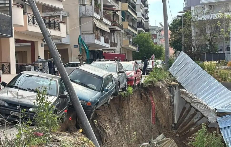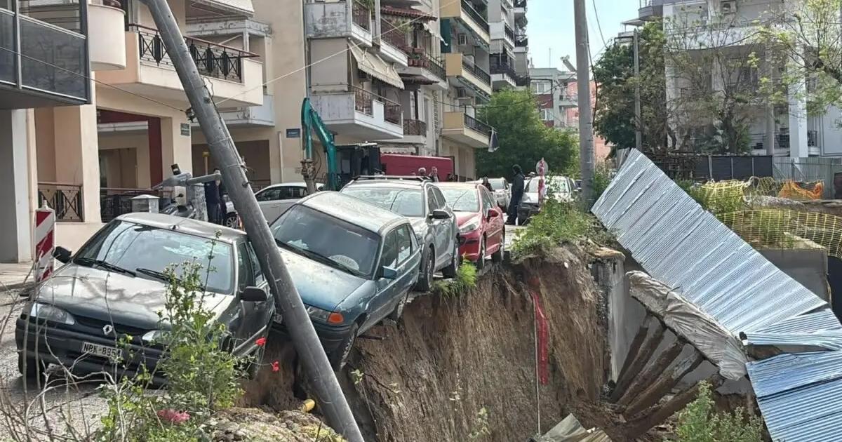 Λόγω της καθίζησης παρκαρισμένα οχήματα βρέθηκαν να κρέμονται στον αέρα ένα αυτοκίνητο έπεσε μέσα στο εργοτάξιο