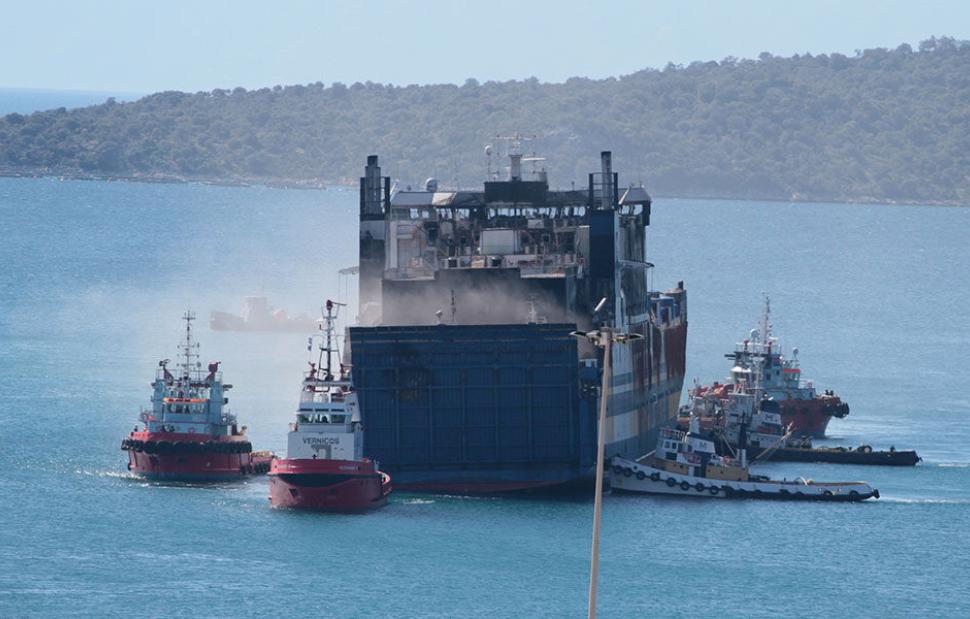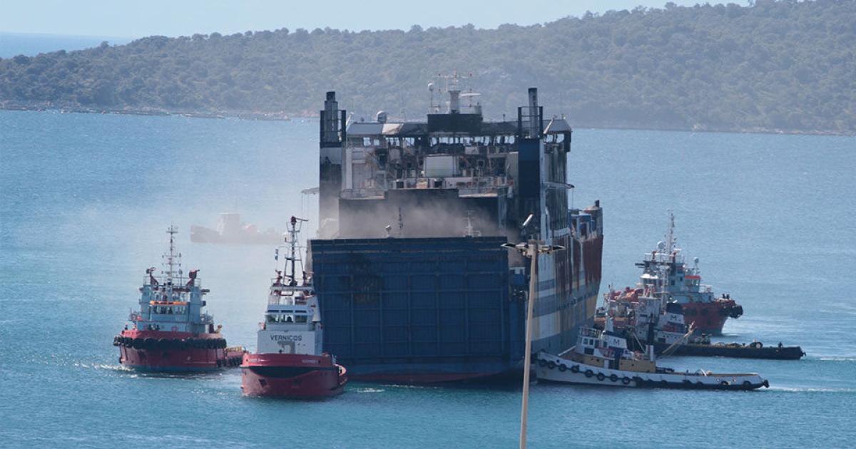 The "Euroferry Olympia" caught fire on the third deck early on Friday, February 18 while it was sailing northeast of the island of Ereikoussa on its way from Igoumenitsa to Brindisi.
