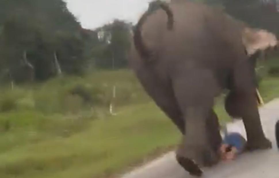 Όπως φαίνεται στο βίντεο, όταν το μεγαλόσωμο ζώο τον πήρε στο κυνήγι εκείνος παραπάτησε με αποτέλεσμα ο ελέφαντας να τον ποδοπατήσει.