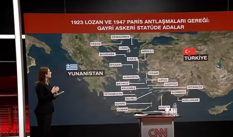 Η Τουρκία αμφισβητεί συνολικά το καθεστώς 152 νησιών, από το βόρειο Αιγαίο ως την Κρήτη, ανάμεσα τους οι Οινούσσες, η Στρογγύλη, το Φαρμακονήσι, η Σαμοθράκη, η Λέσβος, η Ικαρία, η Σάμος, η Ρόδος, η Κως και η Λήμνος.