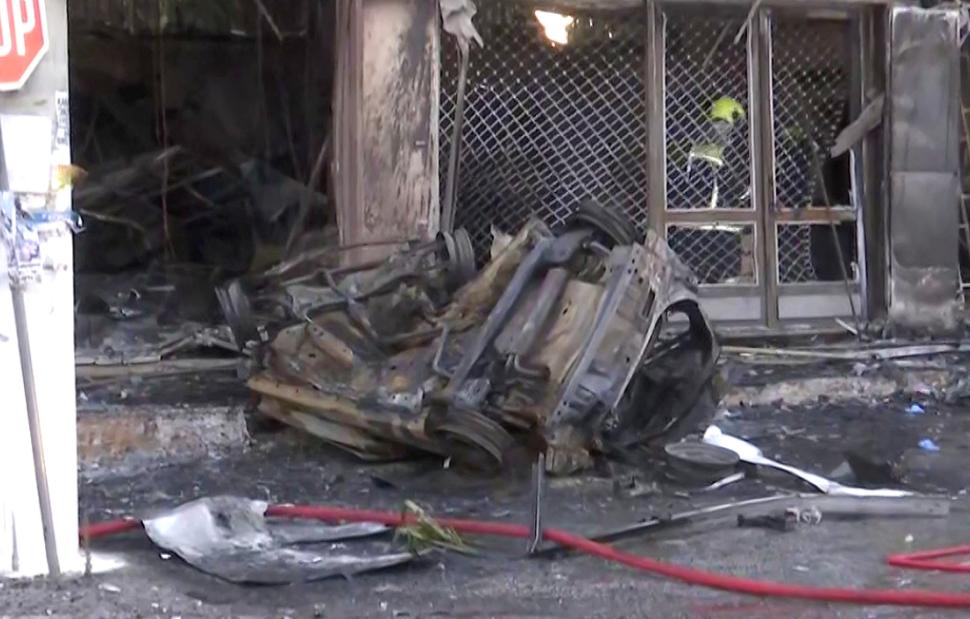 Αποτέλεσμα ήταν να ξεσπάσει φωτιά, από την οποία καταστράφηκε ολοσχερώς και το ΙΧ και το κατάστημα, στο ισόγειο και τον πρώτο όροφο.