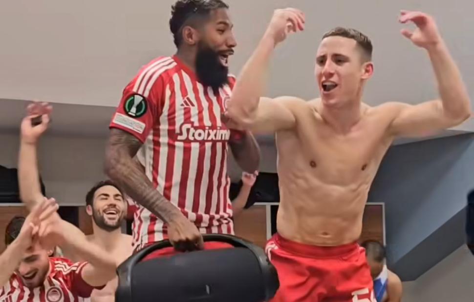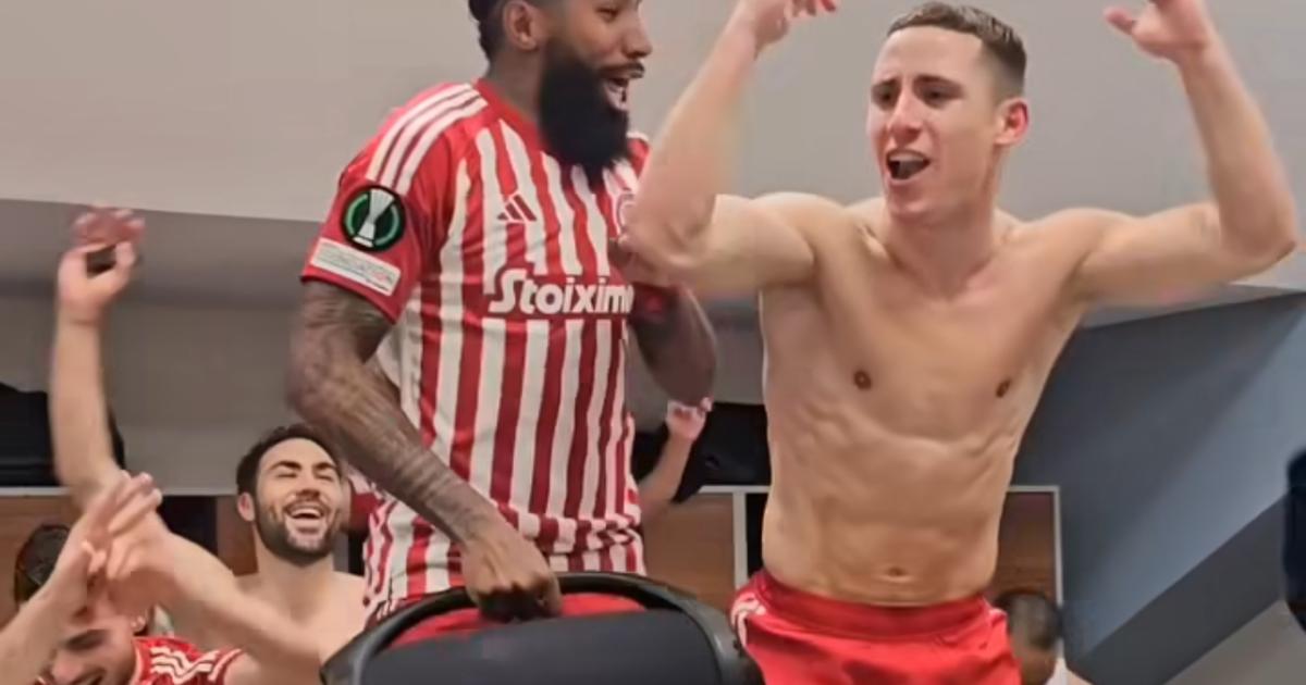 Λίγα λεπτά μετά την λήξη του αγώνα με την Μακάμπι Τελ Αβίβ και την επική πρόκριση του Ολυμπιακού στα ημιτελικά του Conference League, οι ποδοσφαιριστές των «ερυθρόλευκων» έστησαν ένα μεγάλο γλέντι στα αποδυτήρια.