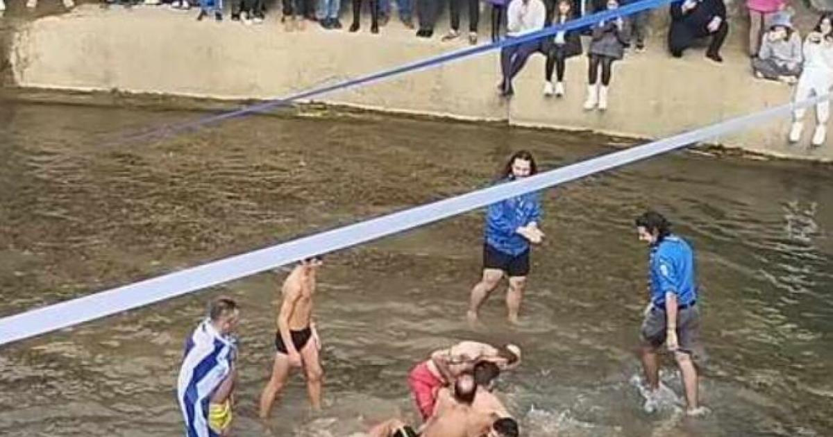 Ένα κωμικοτραγικό σκηνικό εκτυλίχθηκε στη ρίψη του Σταυρού στα Τρίκαλα στα παγωμένα νερά του Ληθαίου, αφού κατέληξαν να πιαστούν στα χέρια οι κολυμβητές.