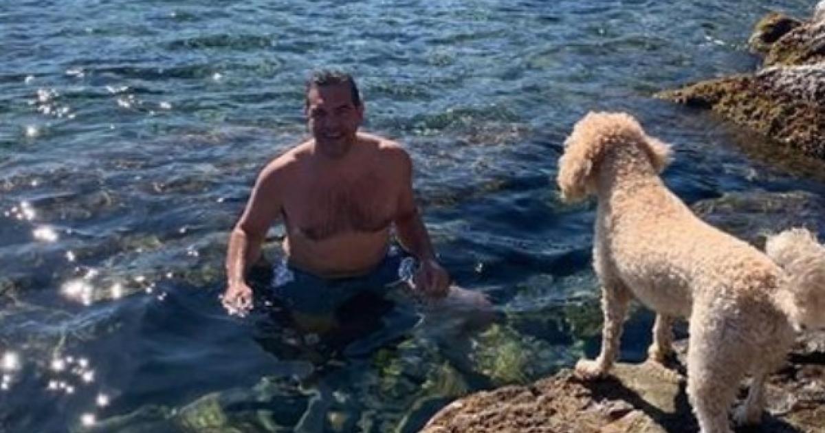 Μάλιστα, όπως αναφέρει στα social media, η αγαπημένη του σκυλίτσα δεν πείστηκε από την βουτιά του.