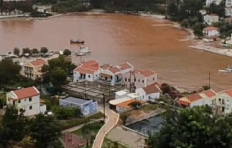 Λασπόνερα από κοκκινόχωμα πλημμύρισαν όλο το νησί που κυριολεκτικά έμοιαζε να βουλιάζει στα νερά, παρασύροντας φερτά υλικά, χαλίκια, πέτρες, κλαδιά δέντρων κλπ, ενώ ο Δήμος βρισκόταν επί ποδός και οι κάτοικοι προσπαθήσουν να αντιμετωπίσουν την κατάσταση. Η θάλασσα έγινε… κόκκινη! Σε ένα απίστευτο θέαμα, από τους τόνους λάσπης που έπεφταν μέσα.