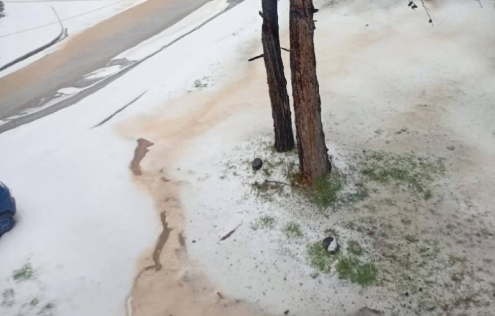 Σφοδρή χαλαζόπτωση έπληξε το μεσημέρι τον Πολύγυρο Χαλκιδικής. Οι δρόμοι έγιναν κάτασπροι και το σκηνικό θύμιζε χειμώνα.